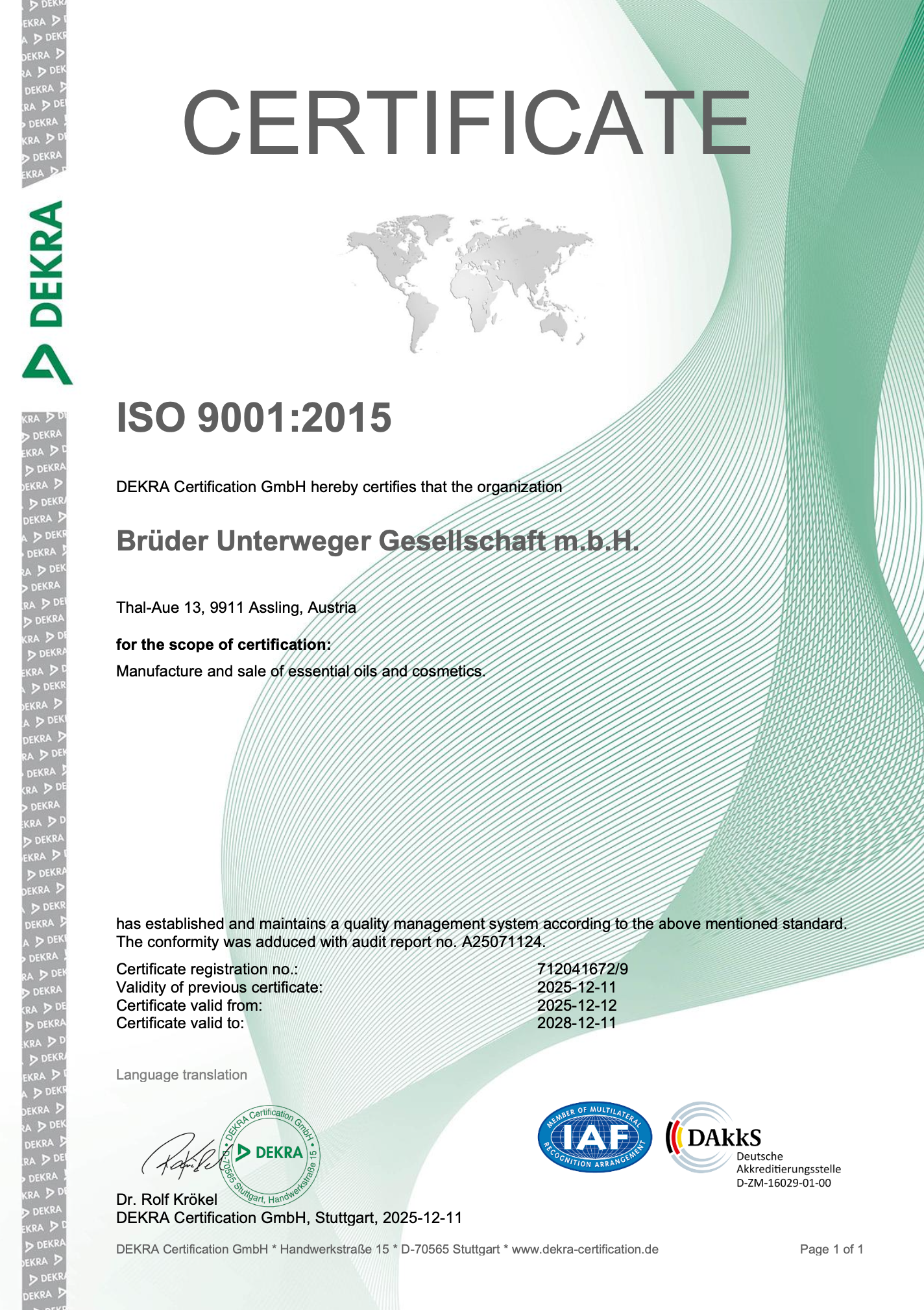 Today, Brüder Unterweger supplies essential oils to 38 countries worldwide. 95% of the total production is exported, with the USA being one of the main target markets, from the East Coast to the West Coast, alongside Western Europe.